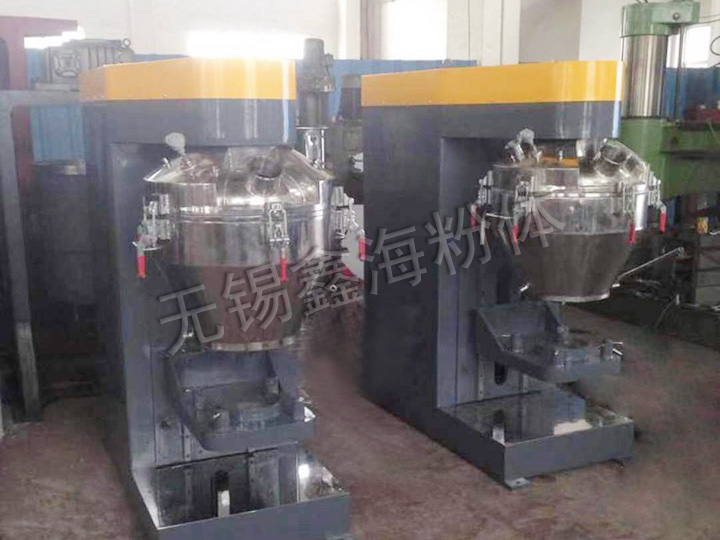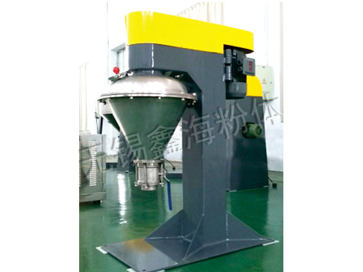 该混合机具有锥形混合腔体,并配有中心转轴,通过转轴的速度产生离心力将粉料推向混合腔体内壁。此时腔体的锥形形状使粉体产生一个沿内壁向上的运动。粉体再由独特的混合机盖引导到混合机的中心,并回落到混合腔的底部,重新开始新一轮的混合过程。