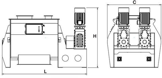 双轴浆叶混合机装有两根反向旋转的平行轴,装有不同预设角度的浆叶。浆叶旋转搅动物料的线速度超过零界转速,致使物料能达到抛物线的Highest点,我们称之为无重力点,所以我们又称双轴浆叶混合机为无重力混合机。