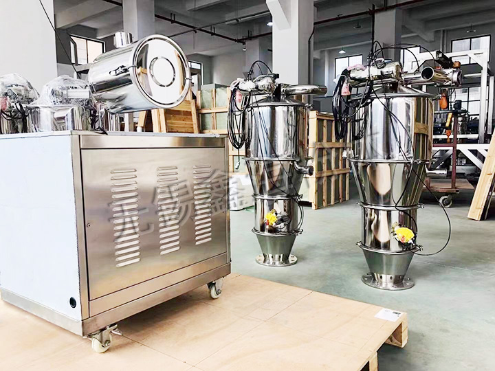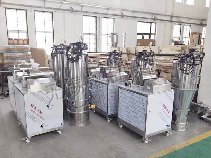该机是国内合适、完善的粉状料、粒状料、粉粒料混合料的真空输送设备。真空上料机能自动地将各种物料输送到包装机、注塑机、粉碎机等设备的料斗中,也能直接把混合的物料输送到混合机(如V型混合机、二维混合机、三维混合机等)中,减轻了工人劳动强度,解决了加料时粉尘外溢等问题,是制药厂、促进清洁、文明生产的设备。